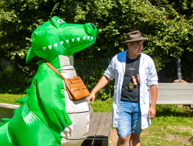Dieses Jahr begleiteten die Kinder Karl und Annika auf einem Abenteuer. Nach einem Flugzeugabsturz fanden sie sich mitten im Dschungel wieder – gemeinsam mit den Kindern meisterten sie jeden Tag neue Herausforderungen. Auf ihrer Reise trafen sie auf Ur-Einwohner, Cotton Eye Joe, auf den Forscher und sein Krokodil und viele andere Figuren.