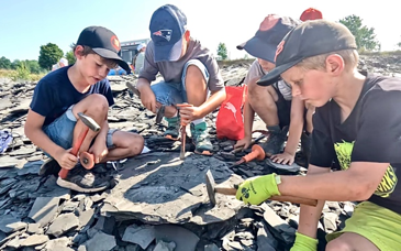 In der zweiten Woche stand ein Ausflug nach Ohmden in den Schieferbruch Kromer an. Ausgestattet mit Hammer und Meißel suchten die Kinder nach Fossilien – und wurden schnell fündig. Die Begeisterung war riesig, und am Ende gab’s für alle noch ein Eis als perfekte Abkühlung.